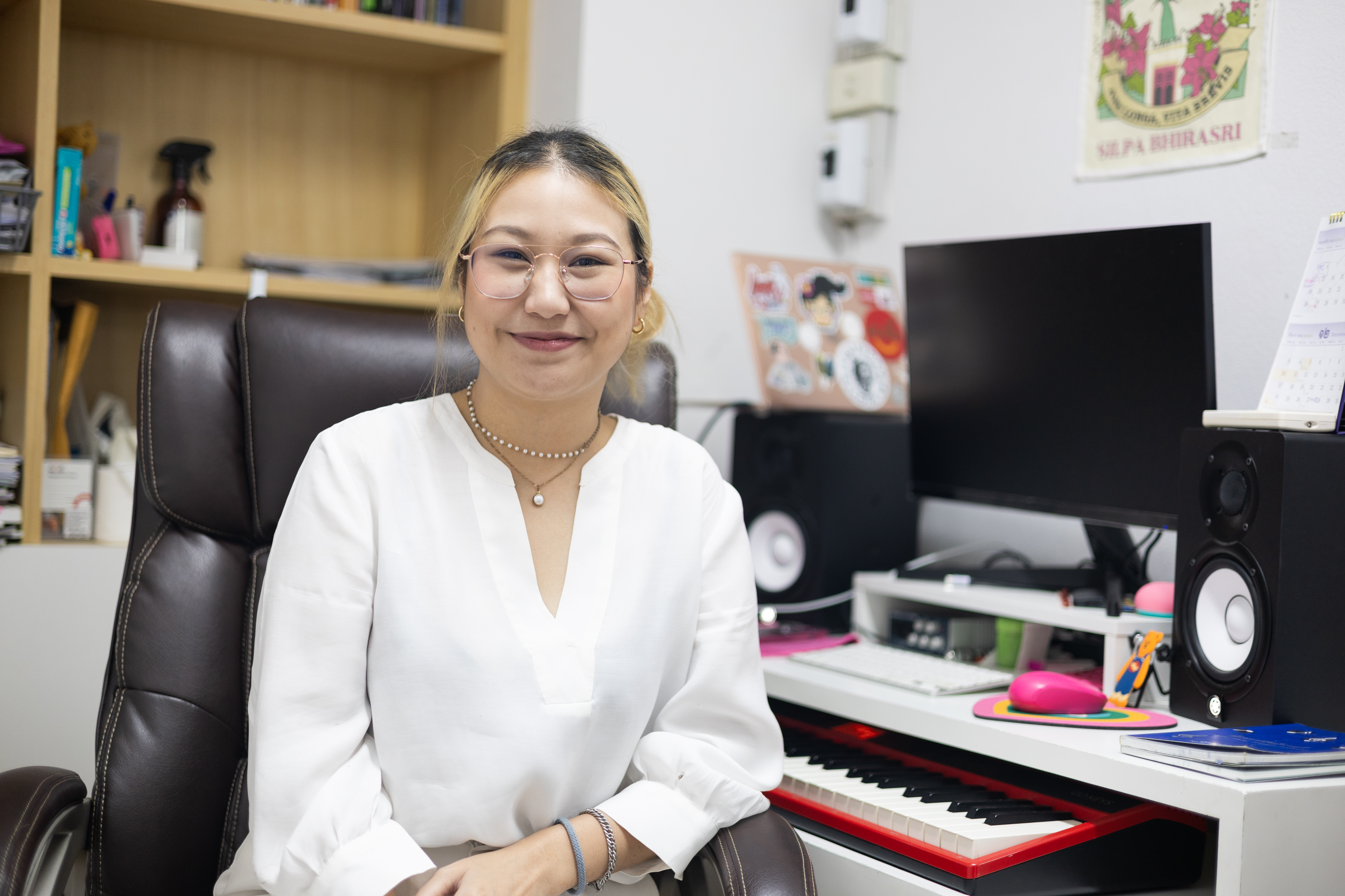 “พลอยไม่เคยไม่สนุกกับการสอนเลย จะเด็กเก่งหรือไม่เก่ง สมมติถ้าอยู่ข้างนอกพลอยหน้าบึ้ง แต่พอเดินเข้าโรงเรียนเจอเด็กปุ๊บ พลอยจะเป็นอีกพลอยเลย แล้วมันเป็นงานที่พลอยไม่เคยเบื่อเลย ยังสนุกตลอด พลอยว่ามันเป็นเป้าหมายที่ทำให้รู้สึกว่าโรงเรียนไปได้เรื่อย ๆ จุดที่รู้สึกว่าเบิร์นเอาต์มันเป็นอย่างอื่นที่ไม่ใช่ตัวเด็กแต่เป็นเวทีที่น้อยหรือการซัปพอร์ตข้างนอกที่เด็กไม่ได้มีพื้นที่ หรือว่าจะจัดคอนเสิร์ตเด็กแต่ละทีมันไม่มีห้องที่มีแกรนด์เปียโนคุณภาพวางแบบนั้น พวกนี้ทำให้เรารู้สึกต้องแอ็กทิฟว่าทำยังไงให้วันหนึ่งเราจะมีหรือจะทำอย่างนั้นให้เด็กได้”