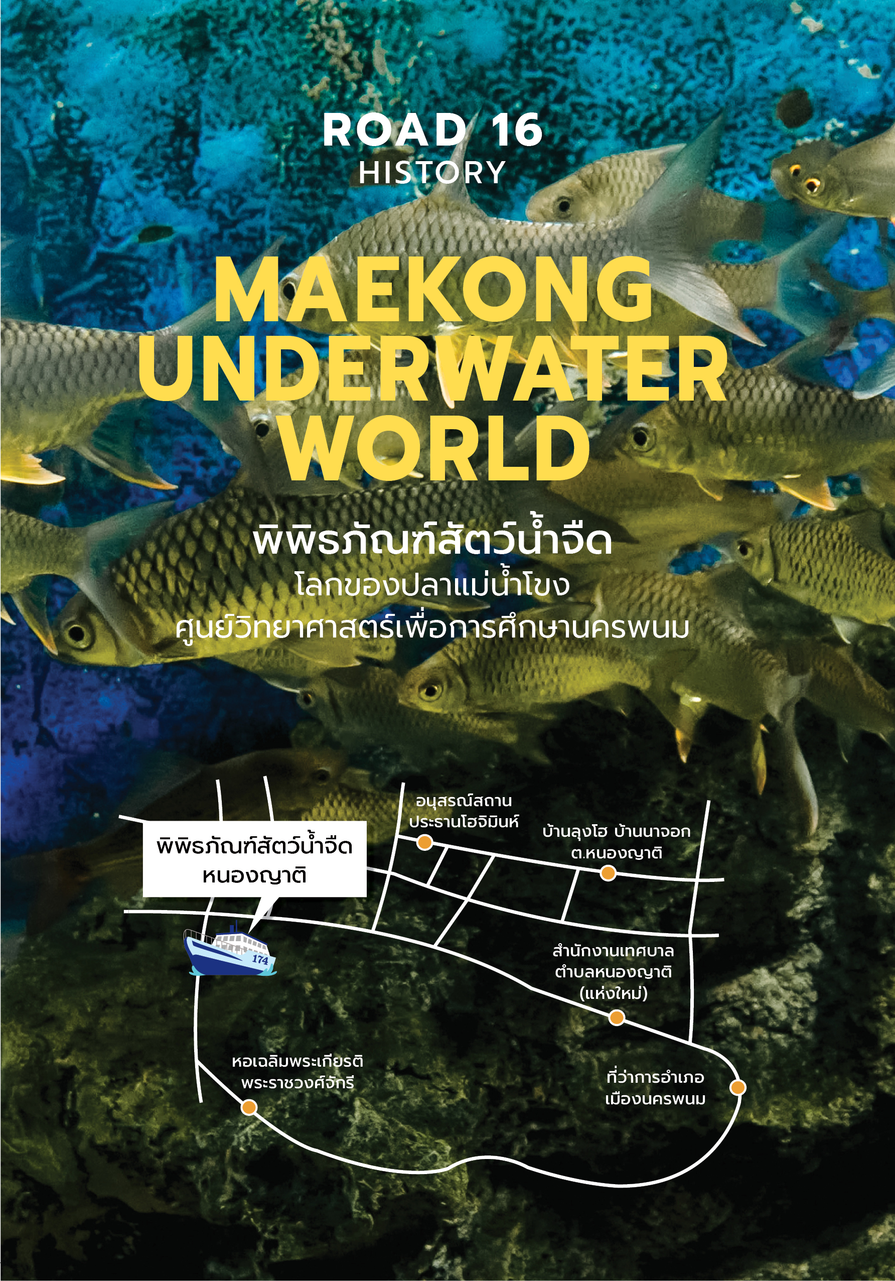 ใต้แม่น้ำสายอันกว้างใหญ่ที่ชื่อ แม่น้ำโขง เป็นโลกของสัตว์น้ำจืดน้อยใหญ่ที่อาศัยอยู่รวมกันจำนวนมาก หลากชนิด หลากสายพันธุ์ และนครพนมก็เป็นจังหวัดที่มีพื้นที่อยู่ติดกับแม่น้ำโขง โดยมีความยาวตามแนวฝั่งแม่น้ำโขงประมาณ 174 กิโลเมตร ส่วนระยะทางแนวกว้างที่วัดจากลานพญาศรีสัตตนาคราชฝั่งนครพนม ถึงพระธาตุศรีโคดตะบอง ฝั่งแขวงคำม่วน หรือเมืองท่าแขก สปป.ลาว ประมาณ 6 กิโลเมตร แต่หากวัดแบบตั้งฉากจะอยู่ที่ประมาณ 1.1 กิโลเมตร และเป็นที่รู้กันดีว่า ต้นกำเนิดของแม่น้ำโขงนั้นไหลมาจากเทือกเขาทิเบต ผ่านประเทศจีน พม่า ลาว และมาที่ประเทศไทย และ โลกของแม่น้ำโขง นั้นก็เต็มไปด้วยเรื่องราวหลากหลายมิติที่น่าศึกษาและเรียนรู้ ซึ่งหนึ่งในนั้นก็คือ โลกของปลาแม่น้ำโขง