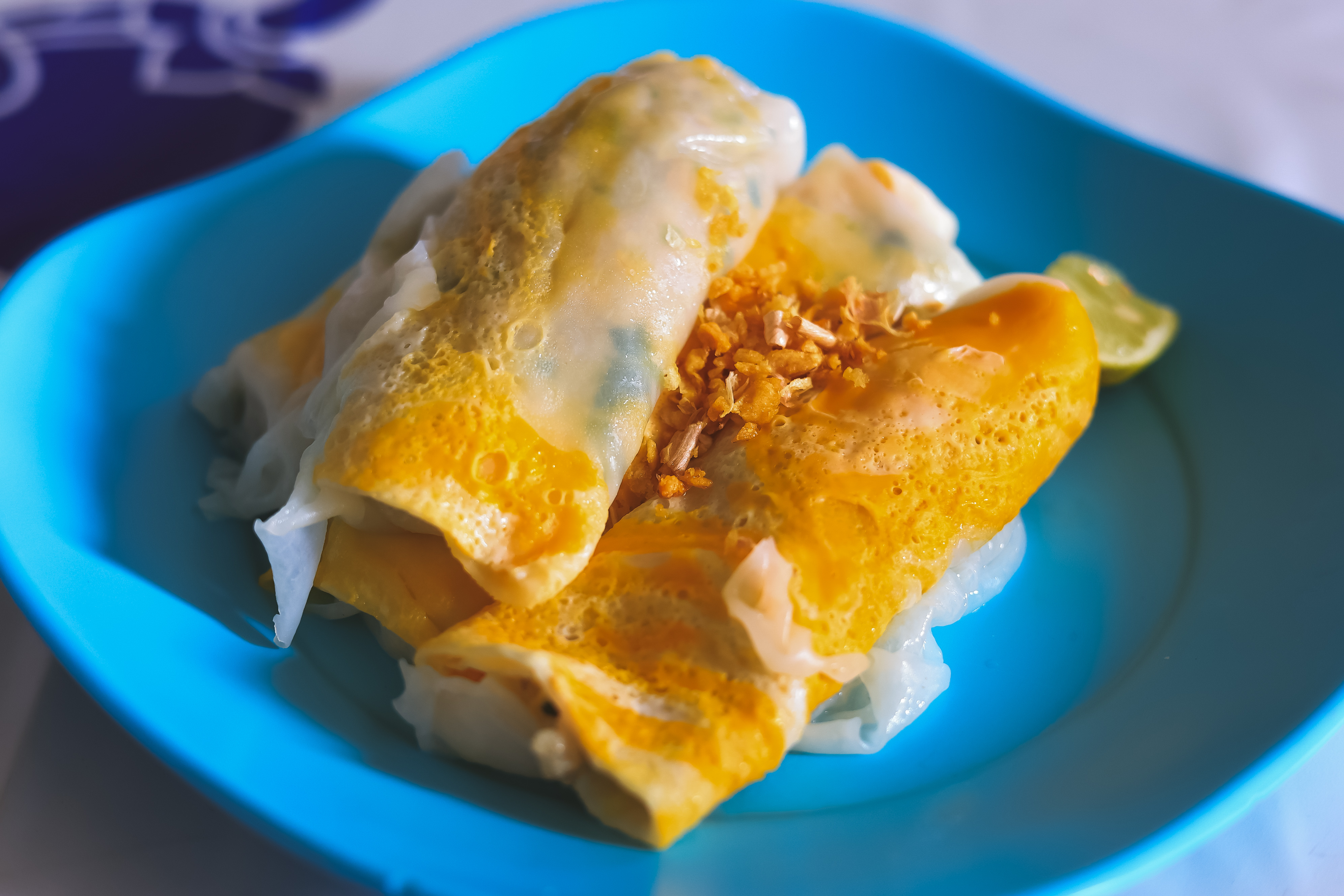 “กลิ่นหอมของแป้งบางและไข่ไก่ที่ตอกตามลงไปบนกระทะร้อน เย้ายวนชวนท้องหิว ควันหน้าเตาฉุยบางเบาคล้ายหมอก กระทบใบหน้าแม่ค้าที่กำลังสาละวนกับการราดแป้งลงบนหม้อร้อน”