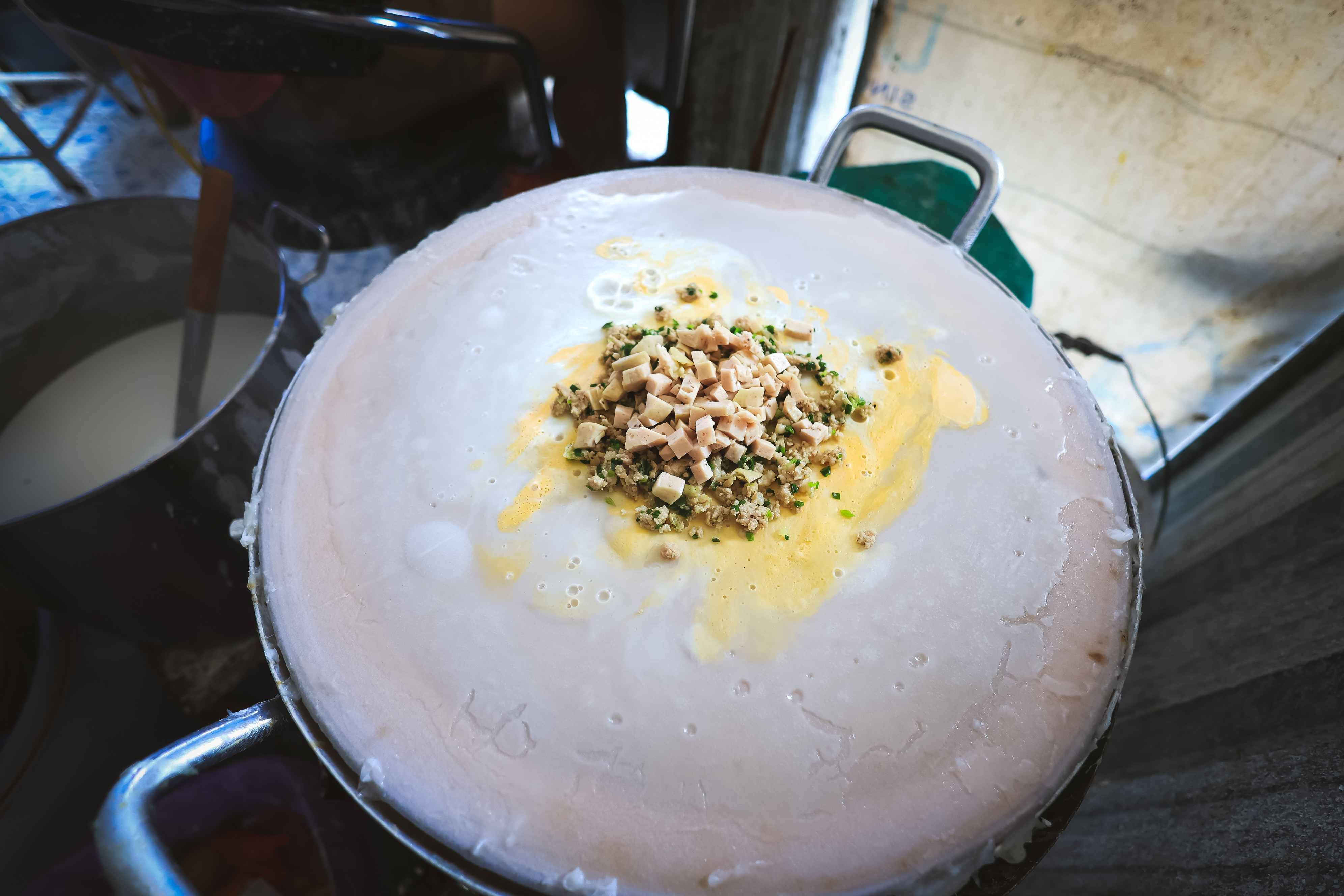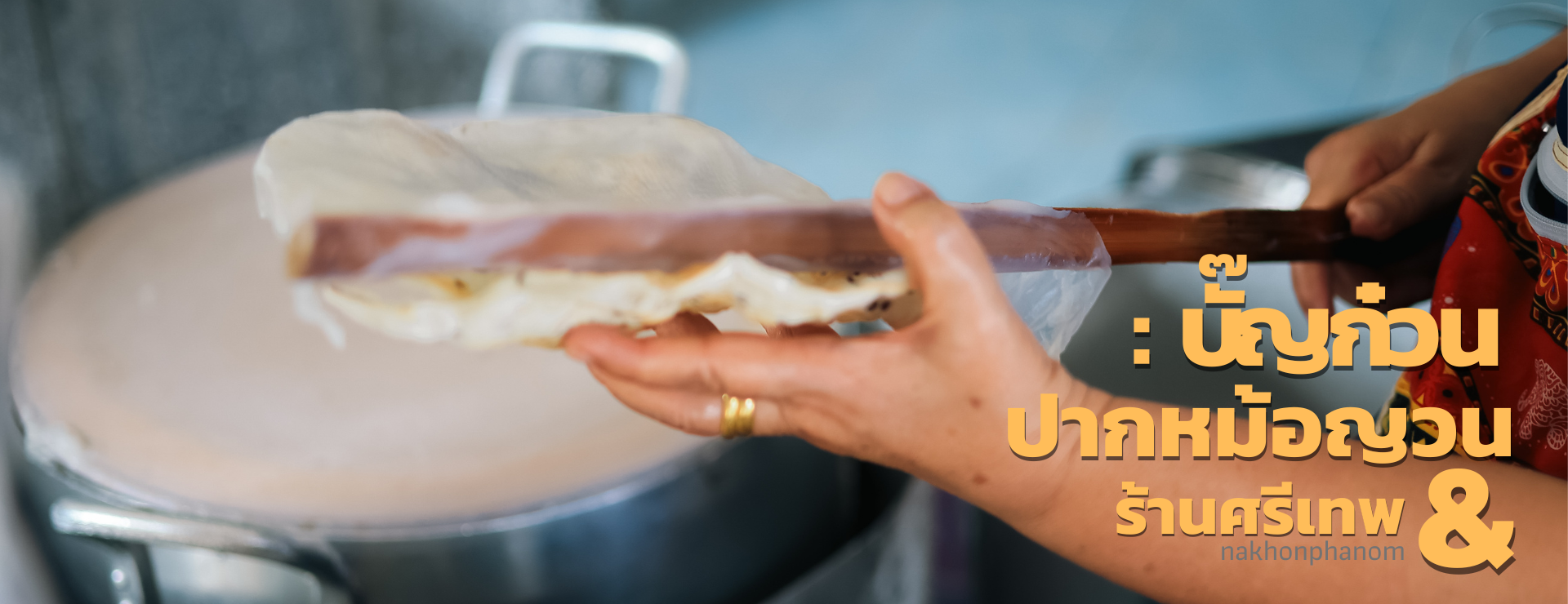 รอจนแป้งนุ่มใกล้สุก ก่อนจะตักไส้ไส่ลงไปวางบนแผ่นแป้งตามเมนูที่ลูกค้าสั่ง ทั้งปากหม้อออริจินัล, ข้าวเกรียบปากหม้อข้าวกล้อง, ข้าวเกรียบปากหม้องาดำ-งาขาว, ปากหม้อใส่ไข่, ปากหม้อไข่ไม่แป้ง, ปากหม้อไข่ข้น, ปากหม้อถาด, ปากหม้อไข่ดาว, ปากหม้อห่อไข่ นี่คือรสชาติเวียดนามในนครพนม ที่หอม กลมกล่อม อร่อย “ปากหม้อ” ภาษาเวียดนามเรียกว่า “บั๊ญก๊วน” (Bánh cuốn) ซึ่งคนนครพนมเรียกว่า “ปากหม้อเวียดนาม" หรือ “ปากหม้อญวน” และอีกหลายคนก็เรียก “ข้าวเกรียบปากหม้อ” ซึ่งมีต้นกำเนิดมาจากภาคเหนือของประเทศเวียดนาม จากเดิมเป็นอาหารว่างของชาวเวียดนาม แต่หลังจากได้เดินทางมาถึงนครพนม ก็ได้กลายเป็นทั้งอาหารว่างและอาหารมื้อหลักที่นิยมมากเมนูหนึ่งเลยทีเดียว และจากเดิมมักจะนิยมกินปากหม้อในมื้อเช้า แต่ทุกวันนี้เรียกว่ากินได้ทุกมื้อที่อยากกินเลยล่ะ อาจจะเป็นเพราะว่าปากหม้อมีหลากหลายไส้ให้เลือก และมีส่วนผสมหลักคือแป้ง ซึ่งคนนครพนมกินแป้งและข้าวเป็นอาหารหลักอยู่แล้วนั่นเอง